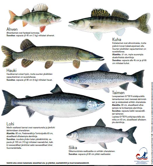 Vastuullisesta kalastuksesta voit lukea mm. Suomen Vapaa-ajan Kalastajien Keskusjärjestön sivuilta: http://www.vapaa-ajankalastaja.fi/vastuullinen/